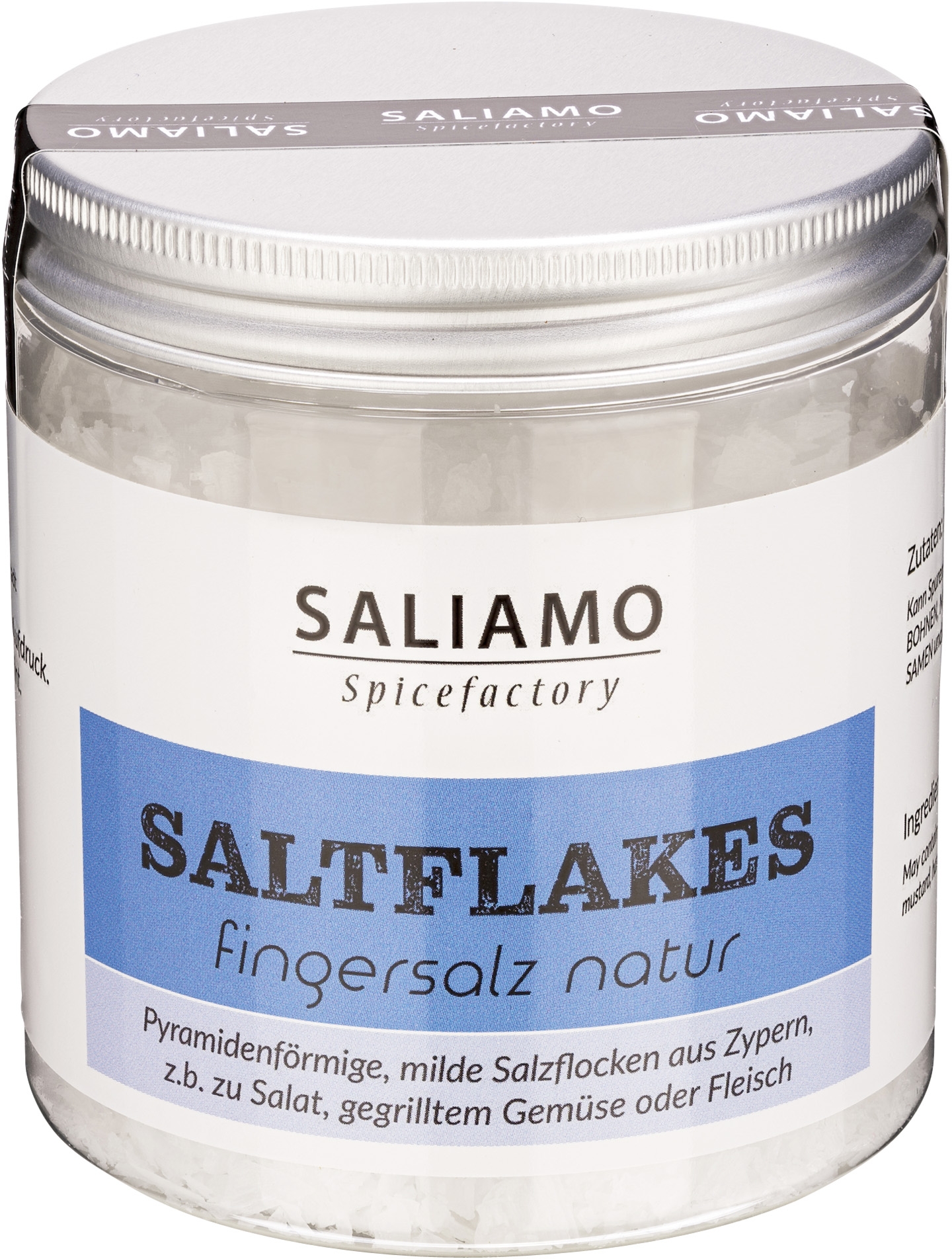 Die pyramidenförmigen Meersalz Flocken aus Zypern sind naturbelassen. Das Fingersalz enthält keine weiteren Zutaten, Zusätze oder Allergene. Es ist frei von gentechnischen Veränderungen und chemischen Bestandteilen. Es besticht im Aussehen durch seine weißen pyramidenförmigen Salzkristalle. Es ist nahezu geruchlos und hat eine angenehme Salznote. Ein außergewöhnliches Salz in der wiederverschließbaren Aromadose!